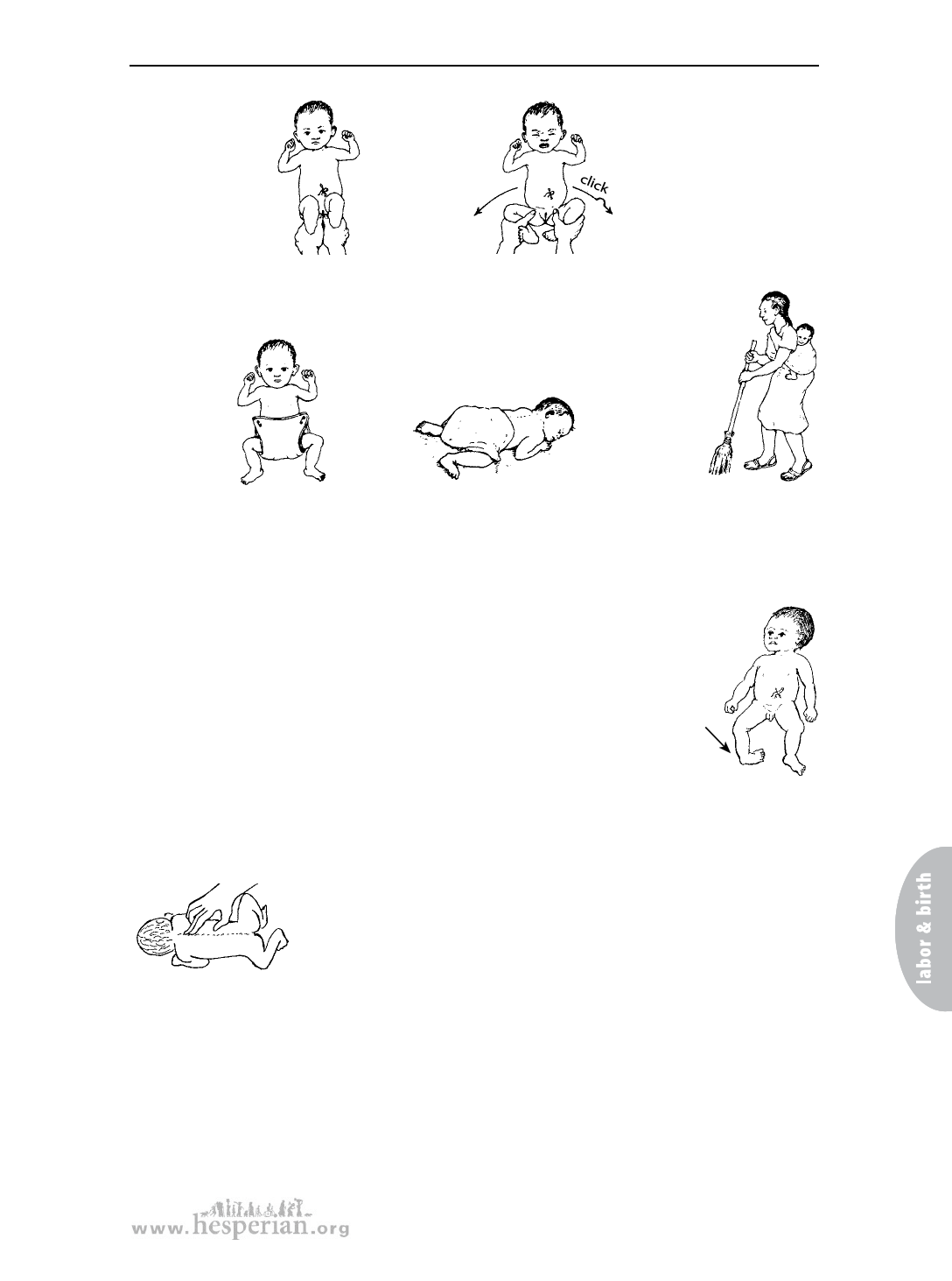 Turn the baby over and look at her spine. Look for holes, sores, cysts, growths, or