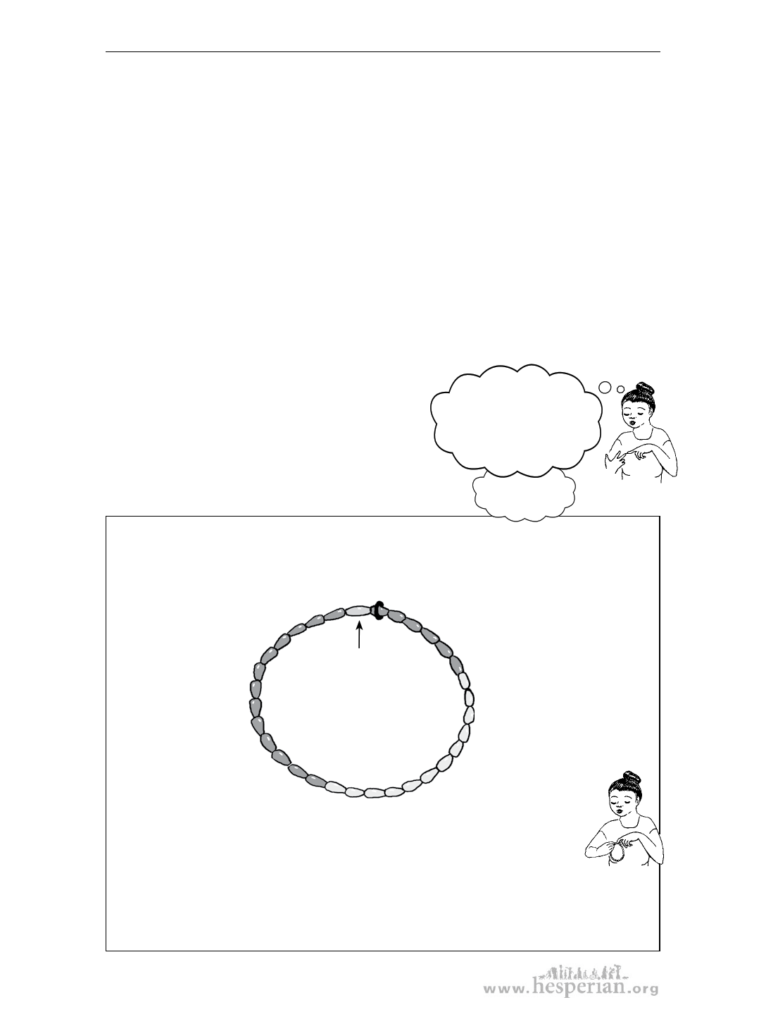 their fertile days. String 32 beads, of 3 different colors, into a necklace.