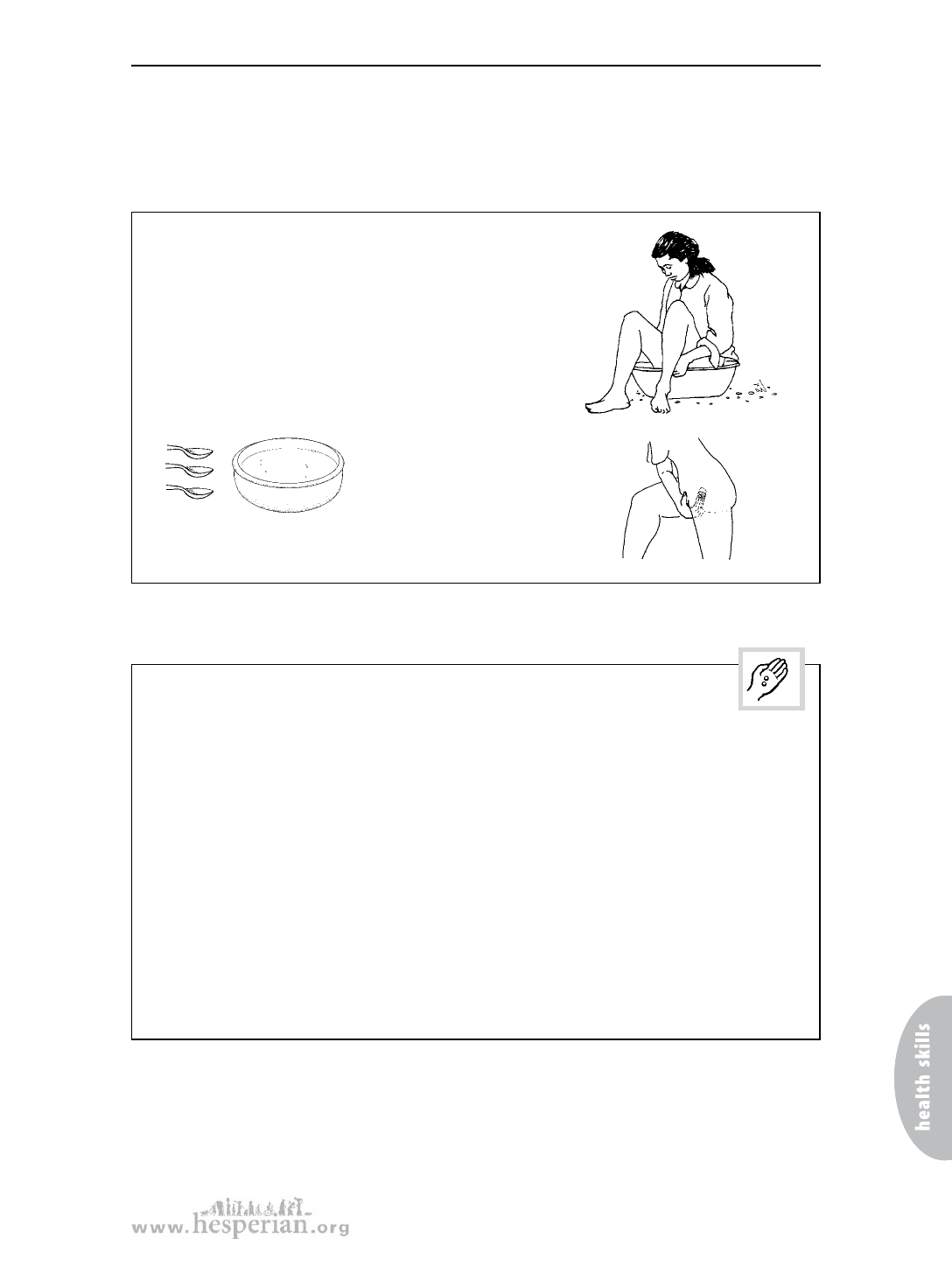 The woman should sit in this liquid 2 times a day