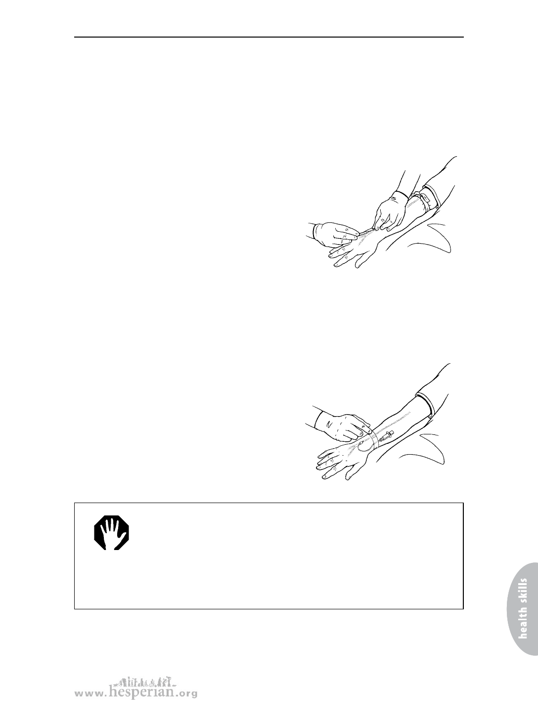 8. If you cannot find a large enough vein in her lower arm, re-tie the cloth or