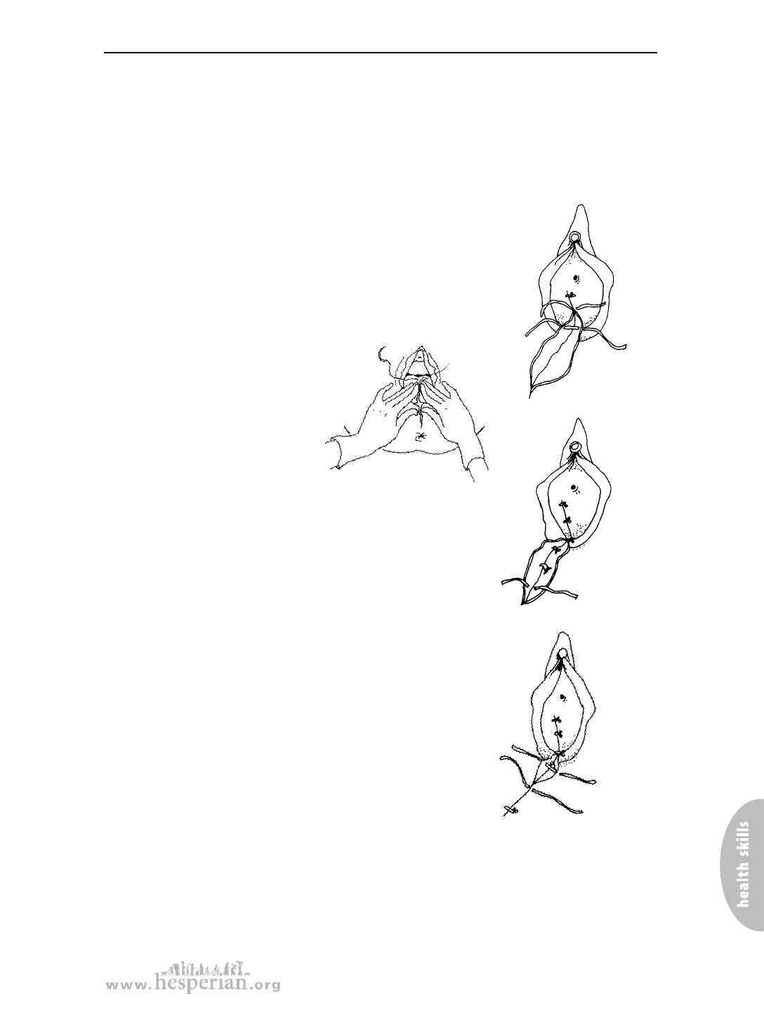 1. If you have it, put sterile gauze in the vagina above the tear. It helps to stop