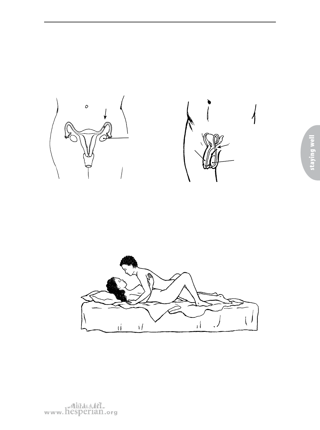 sperm cells can travel through her vagina, through her womb, and into her tubes.