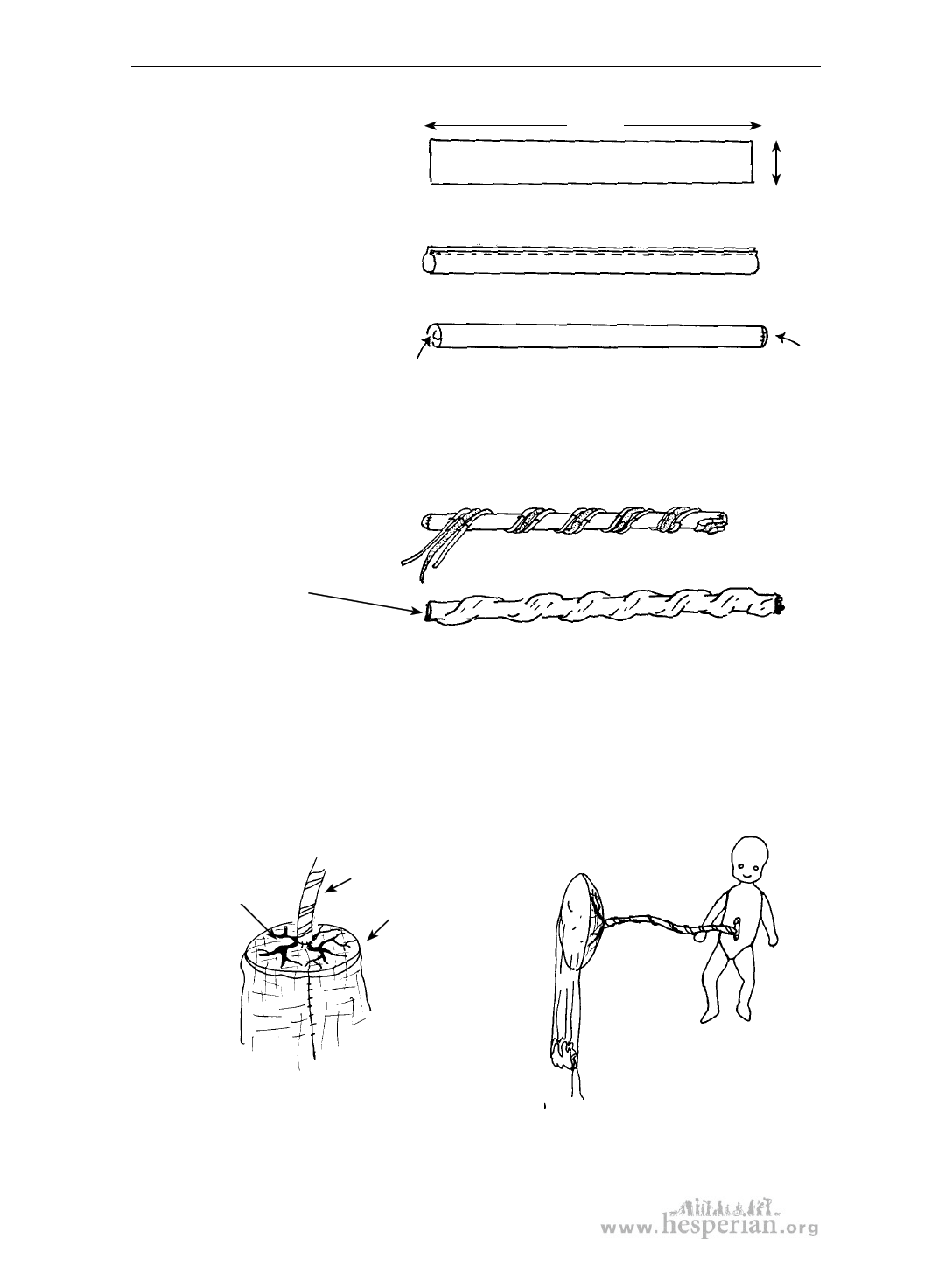 4. To show the arteries and vein in the cord, wind 3 thick strings